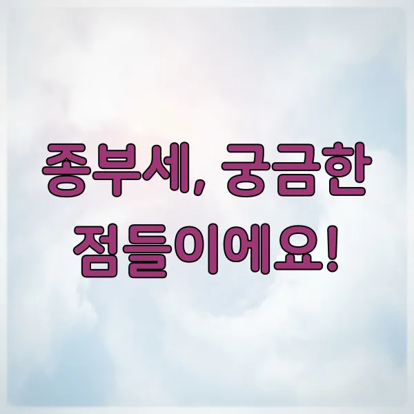 저도 종부세를 알아볼 때, 이런 질문들이 머릿속을 맴돌았어요. 아마 여러분도 비슷한 궁금증이 있으실 것 같아서 몇 가지 추려봤답니다.
