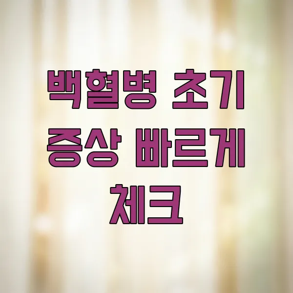 백혈병은 우리 몸의 혈액 세포에 발생하는 암으로, 백혈구가 비정상적으로 증식하는 질병입니다. 조기에 증상을 인지하고 정확한 진단을 받는 것 이 매우 중요해요. 이 글을 통해 백혈병의 초기 신호들을 미리 알아두고, 건강을 지키는 데 도움을 받으시길 바랍니다.